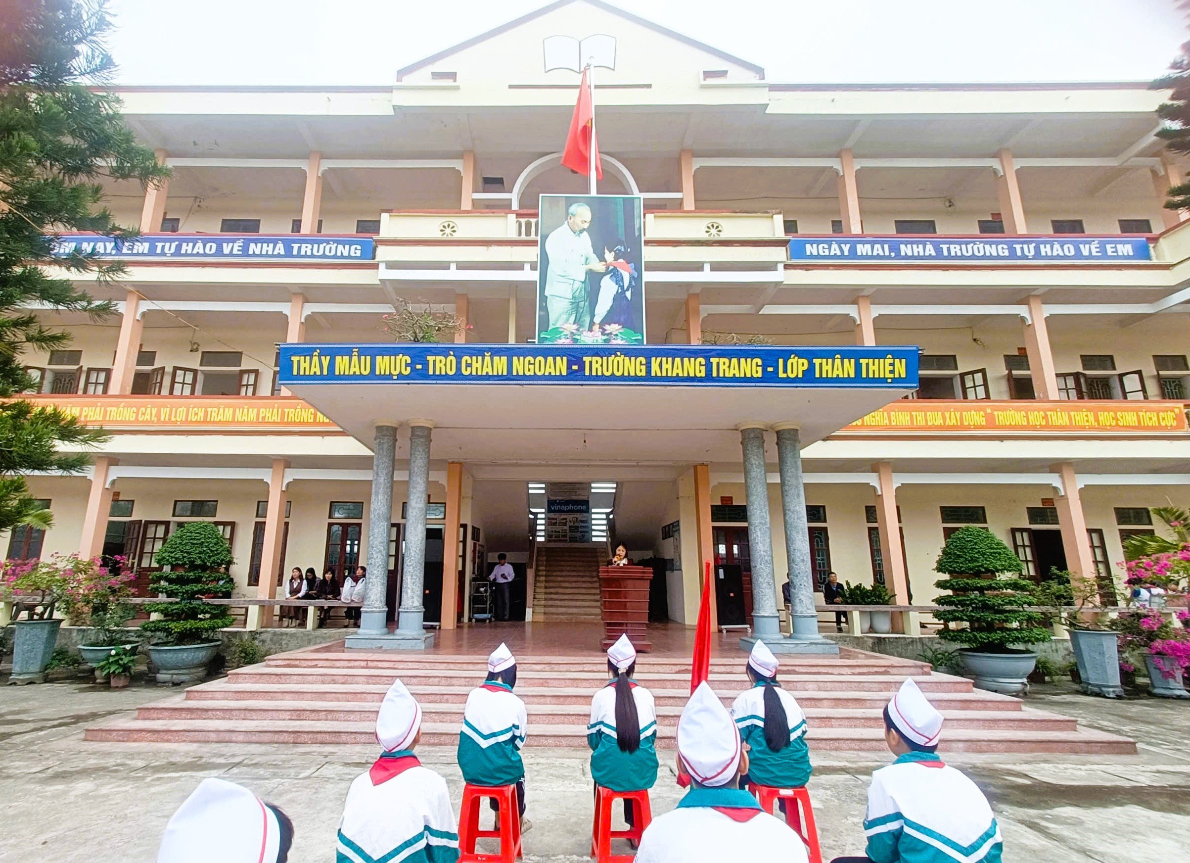 Những phút giây sâu lắng của thầy và trò trường THCS Nghĩa Bình trong dịp kỷ niệm 81 năm ngày thành lập