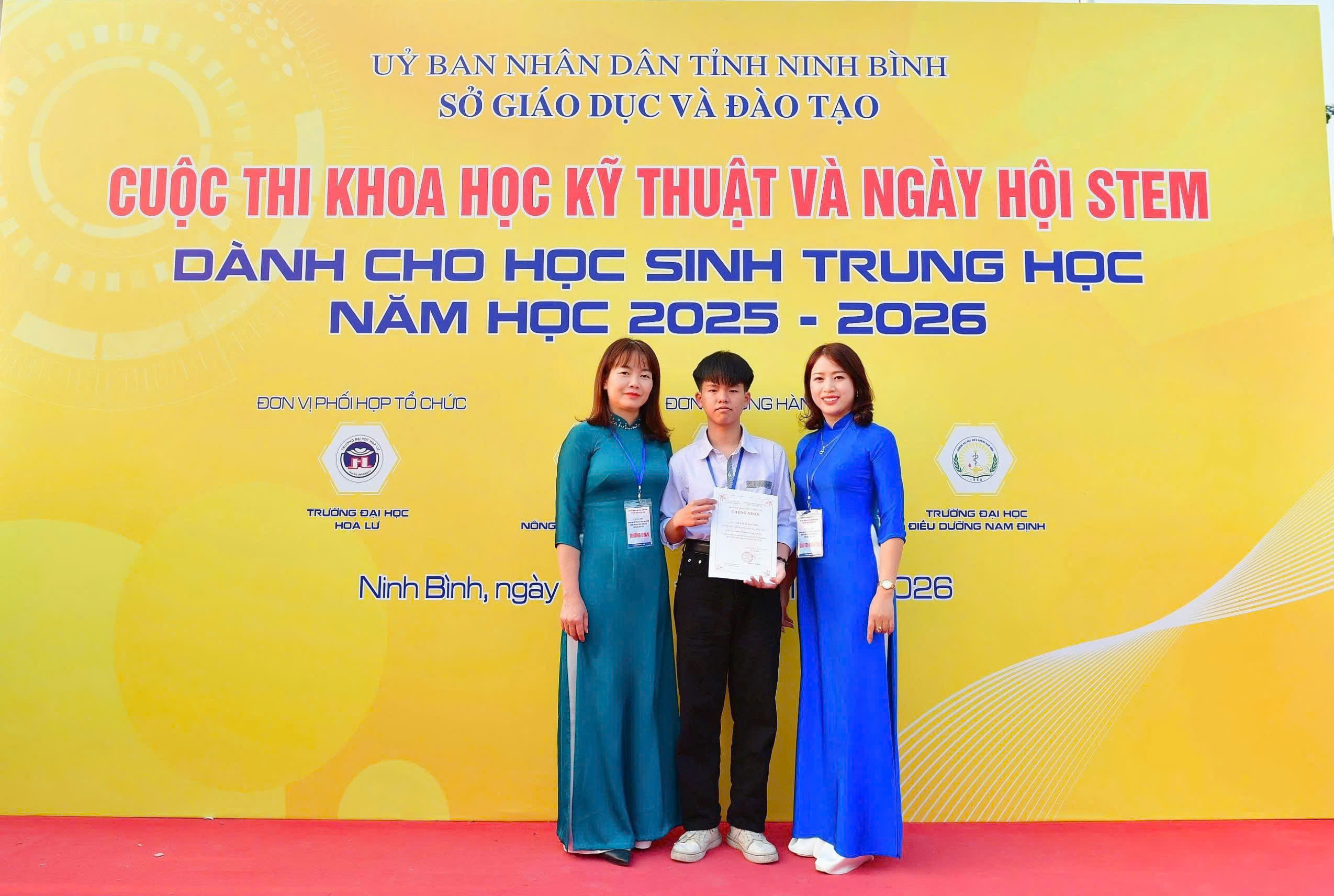 Chúc mừng em Nguyễn Quang Vinh – Học sinh lớp 9A trường THCS Nghĩa Bình đã có sản phẩm STEM được đánh giá Xuất sắc trong Cuộc thi KHKT và Ngày hội STEM tỉnh Ninh Bình dành cho học sinh trung học năm học 2025 – 2026